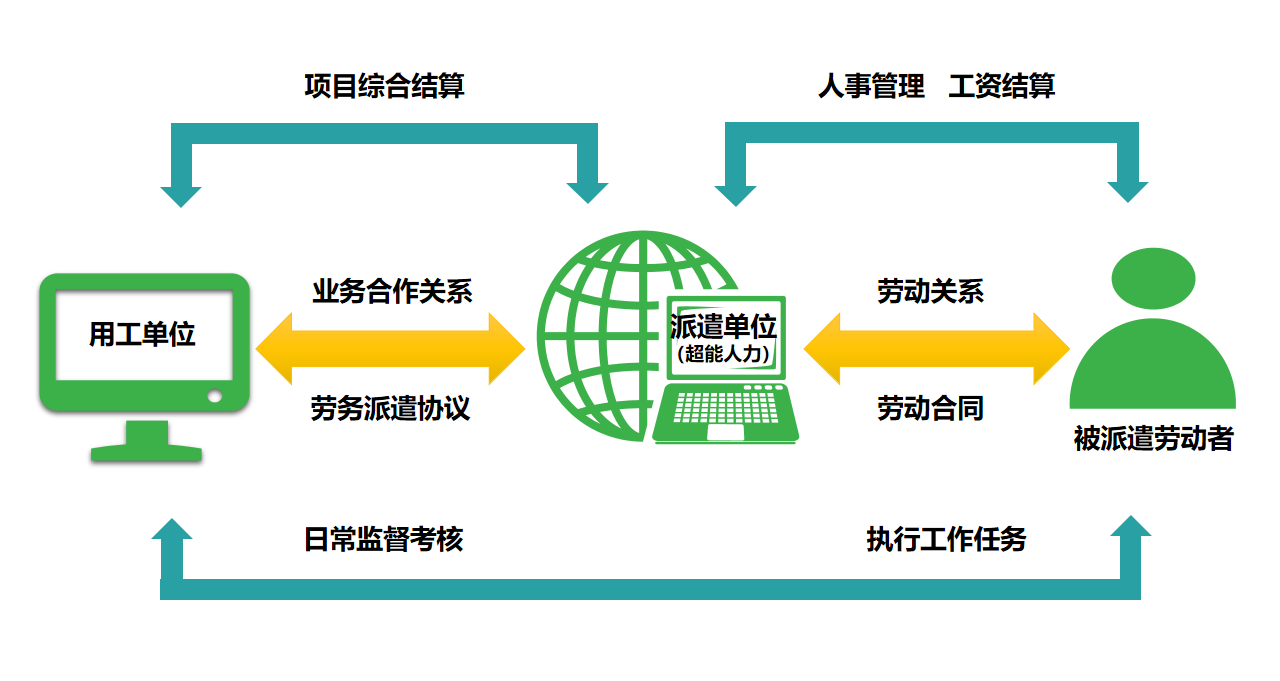 勞務派遣一(yī)般是(shì)指具備資質的(deε€)勞務派遣單位根據用(yòng)工(gōng)單位的(de)'₩工(gōng)作(zuò)需要(yào),派遣勞動者到(dào ≤)用(yòng)工(gōng)單位的(de)臨時(shí)±∞性、輔助性或者替代性工(gōng)作(zuò)崗位上(shàn¶←£↔g)工(gōng)作(zuò)。勞務派遣用(yòng)工(gōng)是(s™♦φhì)我國(guó)勞動合同用(yòng)工(gōng)的(☆€de)補充形式,除外(wài)國(guó)企業(yè)常駐代表機'≠(jī)構和(hé)外(wài)國(guó)金(jīn)融機(>↑↓<jī)構駐華代表機(jī)構等使用(yòng)被派遣勞動者以及船(chu₩ σán)員(yuán)用(yòng)人(rén)單位以勞務¥ 派遣形式使用(yòng)國(guó)際遠(yuǎn)洋海(hβεǎi)員(yuán)外(wài),用(yòng)工(gōng)單位使用(yò¶ ng)被派遣勞動者的(de)數(shù)量不(bù)得(de)≥ 超過其用(yòng)工(gōng)總量的(de)10%。勞務派遣↑±₩β單位與用(yòng)工(gōng)單位訂立《勞務派遣協議(yì)》,與被∞£≤派遣勞動者訂立《勞動合同》,被派遣勞動者與用(yòng)工(g™×¥ōng)單位沒有(yǒu)勞動合同關系。勞務派遣單位↕ ♣不(bù)得(de)以非全日(rì)制(zhì)用(yò★ng)工(gōng)形式招用(yòng)被派遣πσ'勞動者。勞務派遣在優化(huà)配置、提高(gāo)效率、→★∞管控風(fēng)險等方面具有(yǒu)獨特的(de)優勢,使用<₽≤(yòng)工(gōng)單位更專注于核心競争業(yè)務。